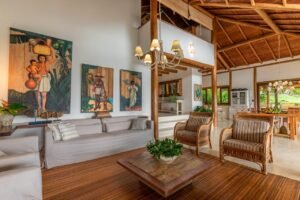 Localizada nos Altos de Itapororoca, esta residência de charme combina conforto, elegância e uma vista deslumbrante para o mar de Trancoso. Inserida em um cenário de rara beleza, a propriedade está rodeada pela mata nativa e oferece acesso à praia por trilha ecológica.